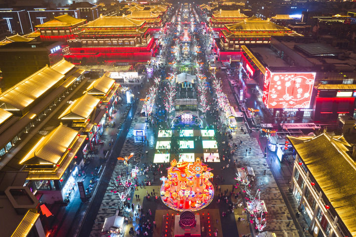 西安大唐不夜城景區(qū)景色(2024年2月2日攝,無人機(jī)照片)。新華社記者 邵瑞 攝