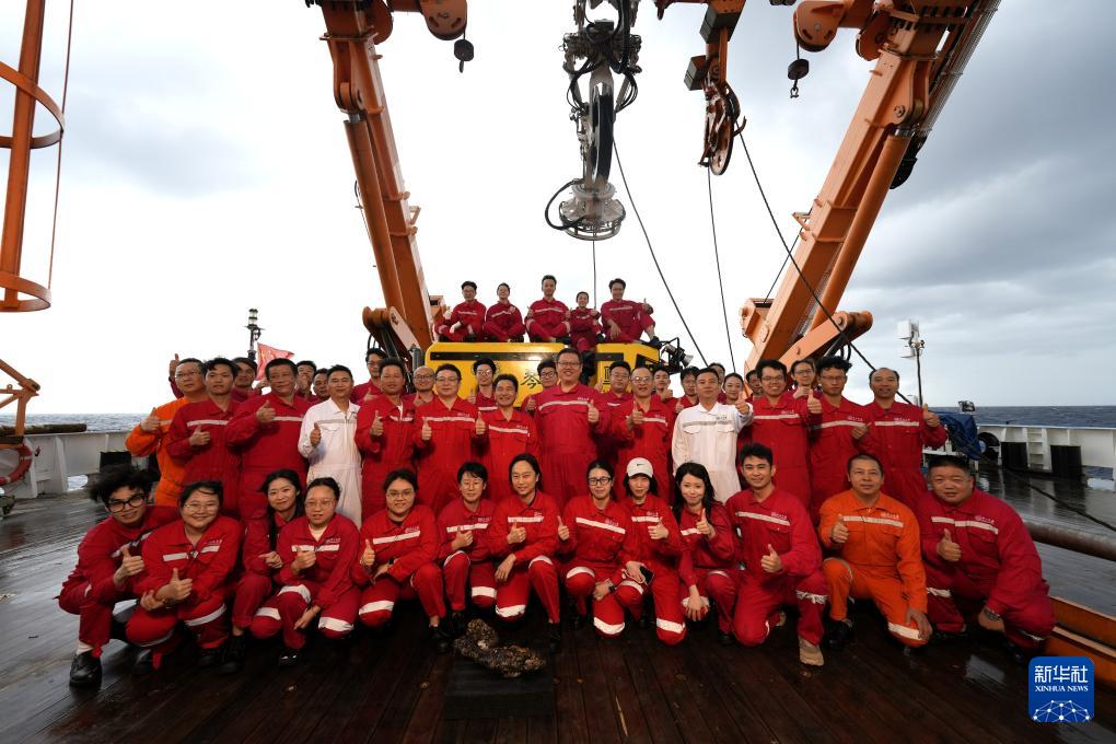 8月23日,“中山大學”號考察隊員與“海琴”號合影。