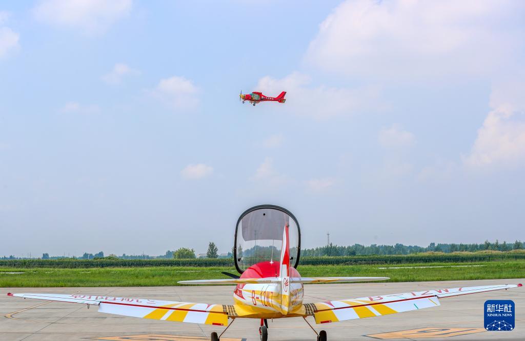 8月24日,在位于山東萊西市店埠鎮(zhèn)的青島萊西通航產(chǎn)業(yè)園,飛行愛(ài)好者駕駛輕型運(yùn)動(dòng)飛機(jī)。
