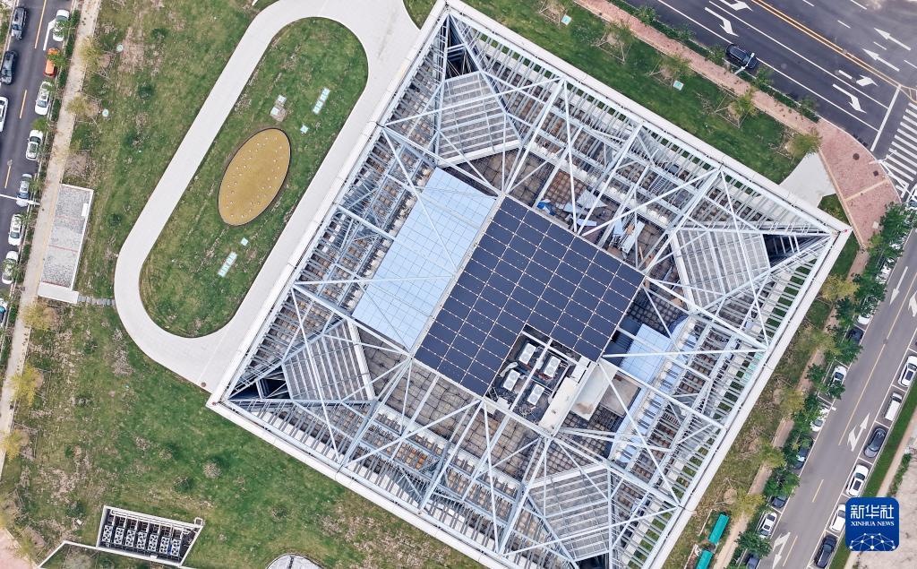 8月25日拍攝的全球首座“超階零碳建筑”(無人機照片)。