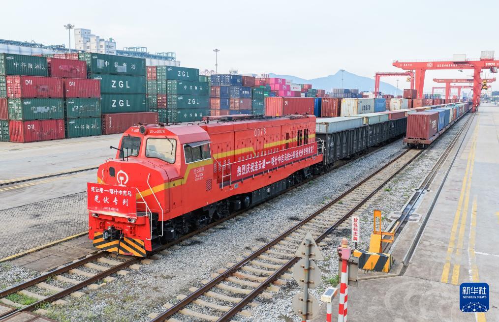 8月29日,在位于江蘇連云港市的中哈(連云港)物流合作基地,滿載50個集裝箱的光伏專列發(fā)車,這是中哈(連云港)物流合作基地開行的首列光伏專列。該趟列車抵達(dá)喀什北站后,貨物再通過汽車運抵烏茲別克斯坦,與傳統(tǒng)的全鐵路運輸相比,這種鐵公聯(lián)運方式可有效縮短運輸距離,并發(fā)揮鐵路運輸?shù)拈L距離、大運量和公路運輸?shù)撵`活性特點。
