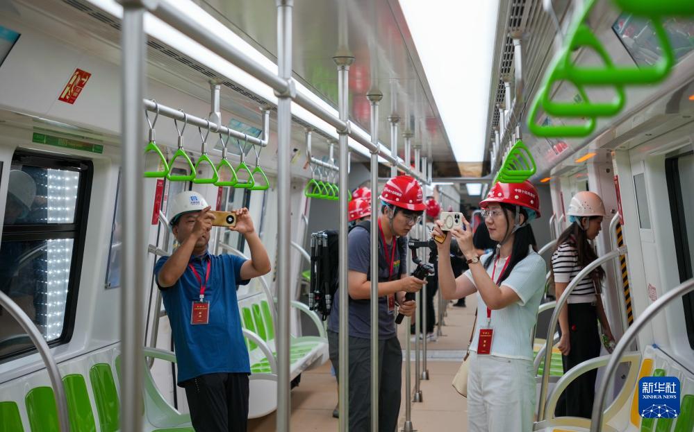 8月31日,在濟(jì)南地鐵4號(hào)線唐冶南站,市民代表和媒體記者在地鐵列車內(nèi)參觀。