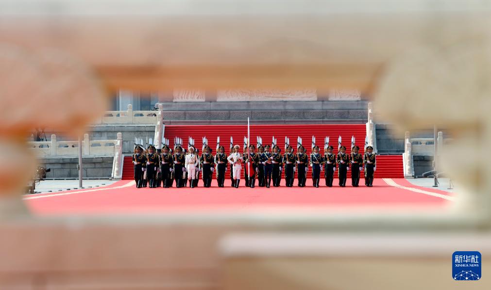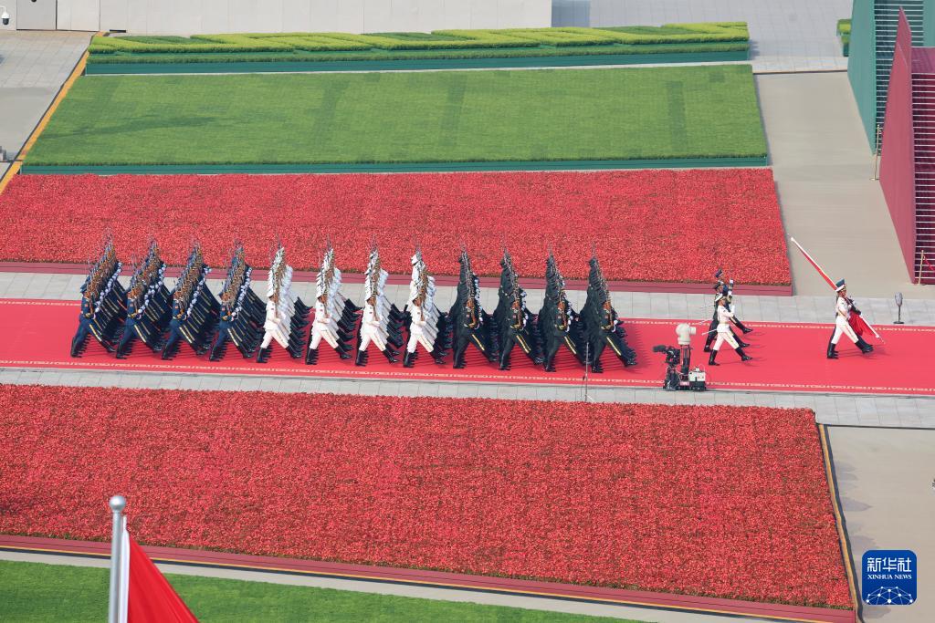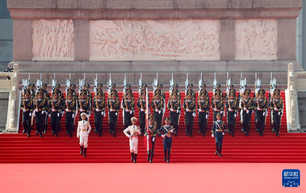 9月3日,紀(jì)念中國人民抗日戰(zhàn)爭暨世界反法西斯戰(zhàn)爭勝利80周年大會在北京隆重舉行。這是國旗護衛(wèi)隊從人民英雄紀(jì)念碑基座出發(fā),走向旗桿基座。