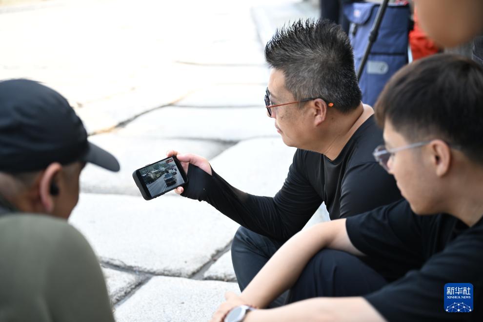 9月3日,市民游客在北京盧溝橋景區(qū)通過手機(jī)觀看大會直播。