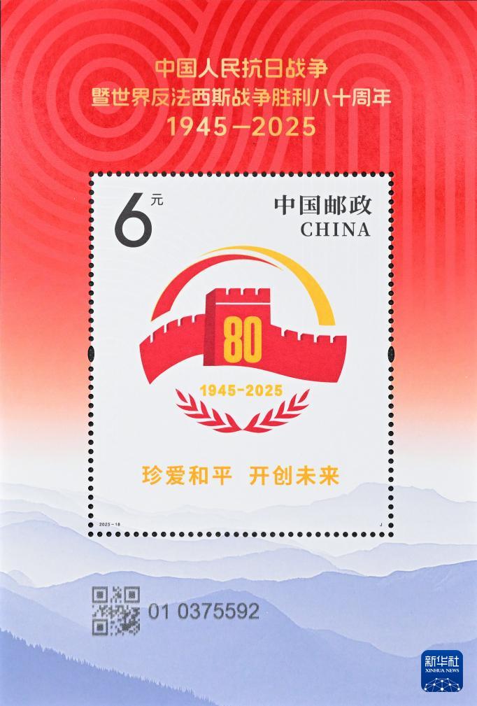 這是9月3日拍攝的《中國人民抗日戰(zhàn)爭暨世界反法西斯戰(zhàn)爭勝利八十周年》紀念郵票小型張。