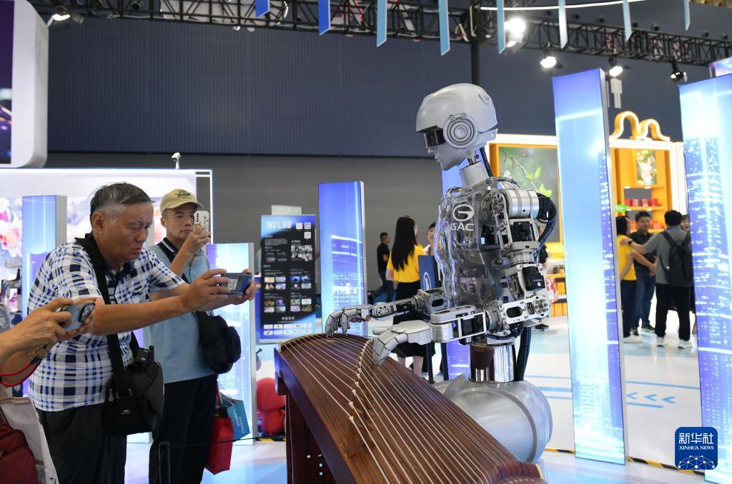 9月12日,在2025廣東國際旅游產業(yè)博覽會現場,智能機器人彈奏古箏。