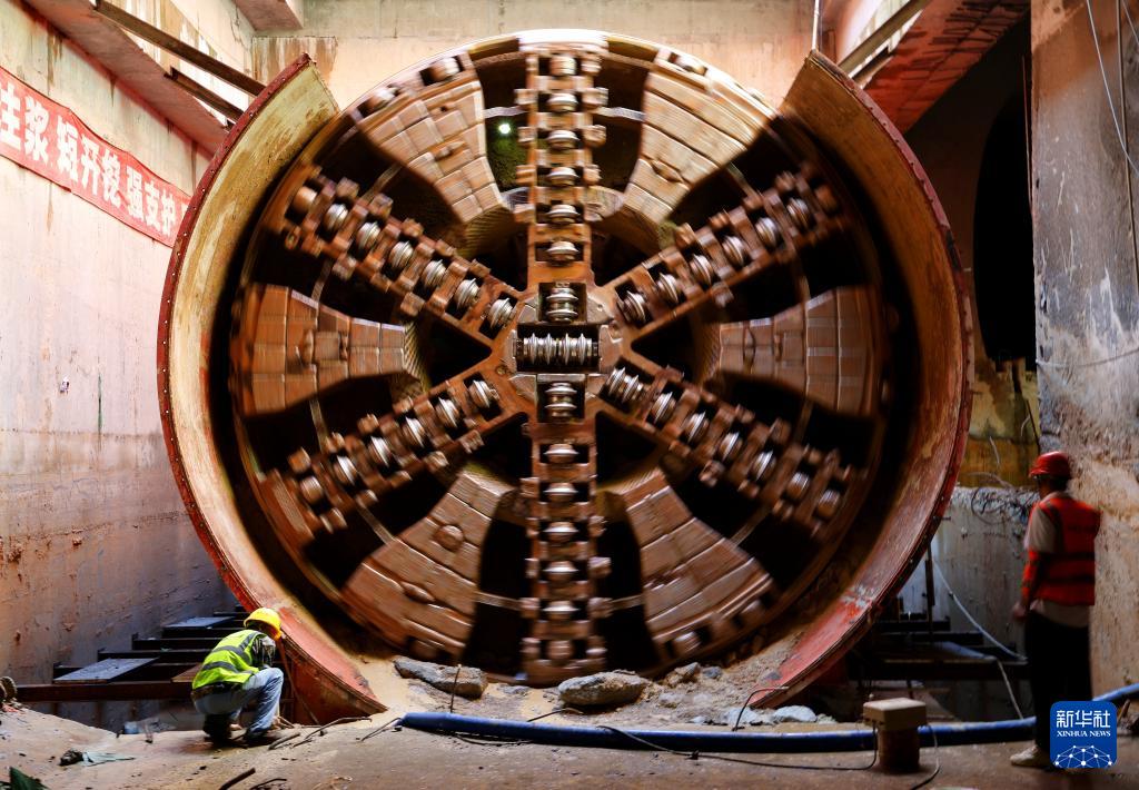 穗莞深城際前皇盾構(gòu)區(qū)1號盾構(gòu)機“廣興11號”順利出洞(9月16日攝)。
