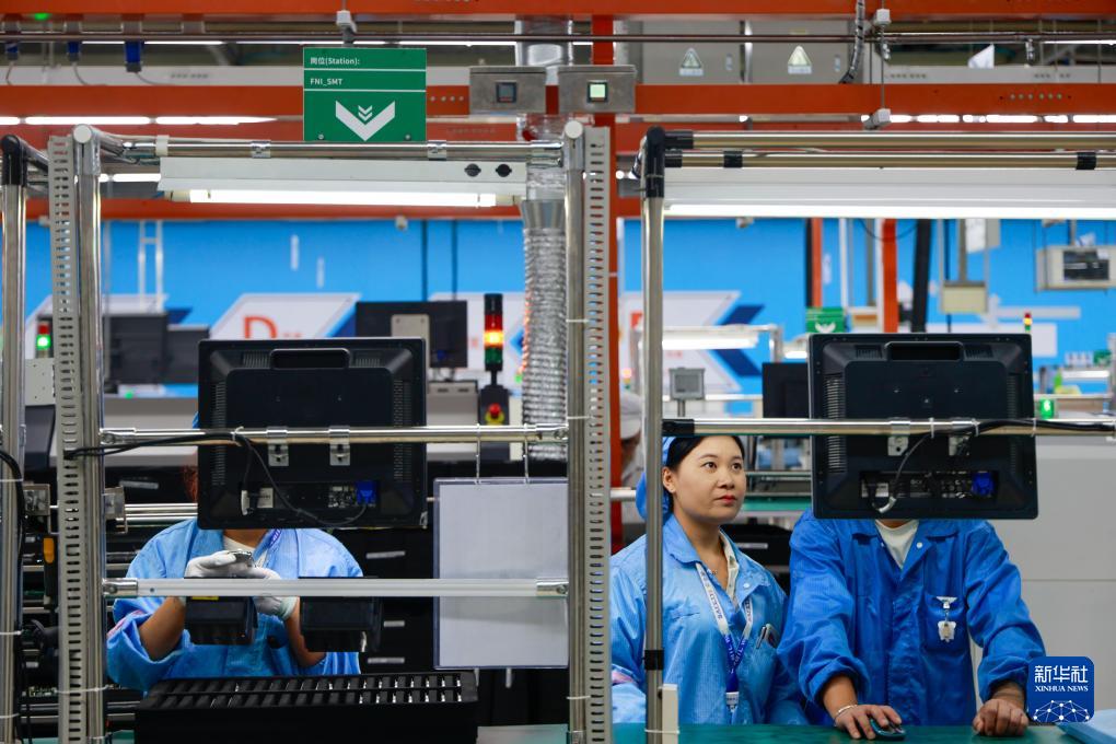 9月15日,工作人員在江蘇無(wú)錫高新區(qū)綜合保稅區(qū)捷普電子(無(wú)錫)有限公司的生產(chǎn)車(chē)間里作業(yè)。