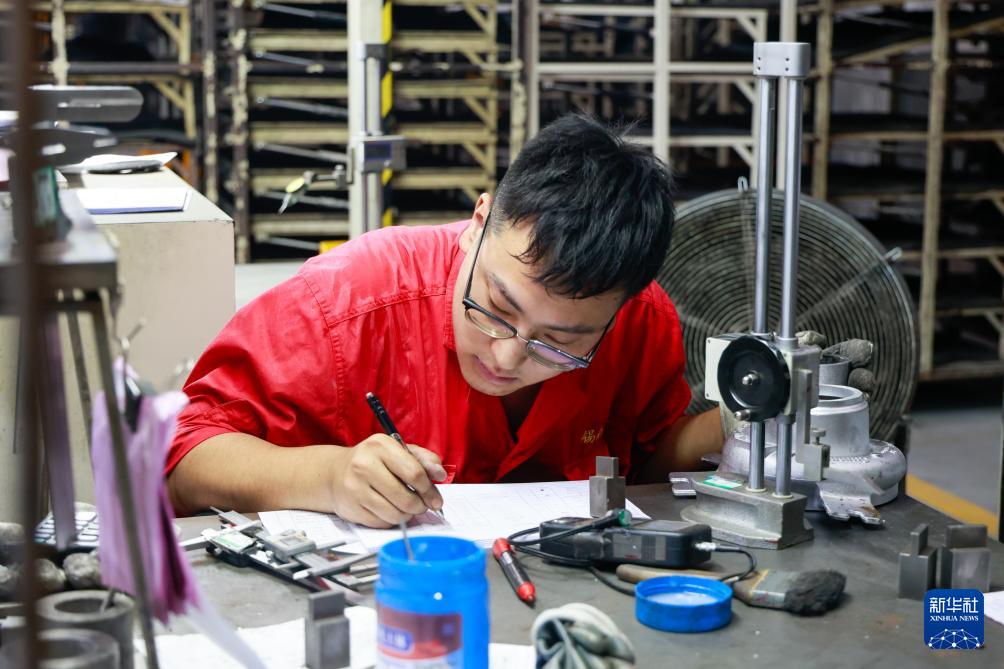 9月16日,工作人員在江蘇無(wú)錫濱湖區(qū)無(wú)錫錫南科技股份有限公司的生產(chǎn)車(chē)間進(jìn)行砂芯制造。