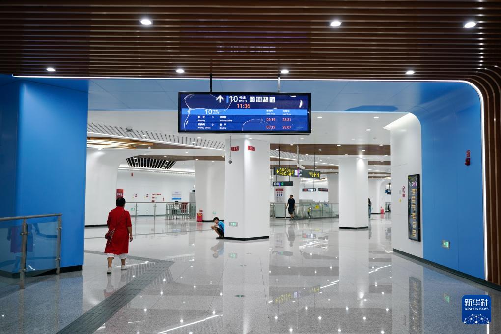 9月17日拍攝的成都地鐵10號線三期高升橋站站臺,上方懸掛的電子屏可實(shí)時(shí)顯示車站導(dǎo)向信息。