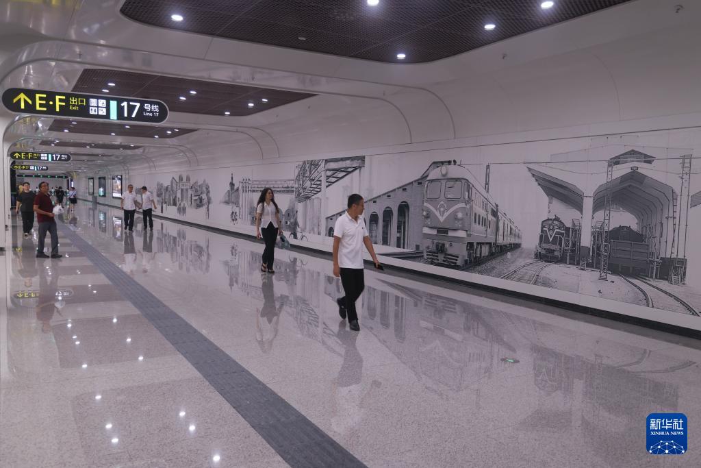 9月17日,在成都地鐵17號線二期二仙橋站,市民觀看站臺內(nèi)文化墻。