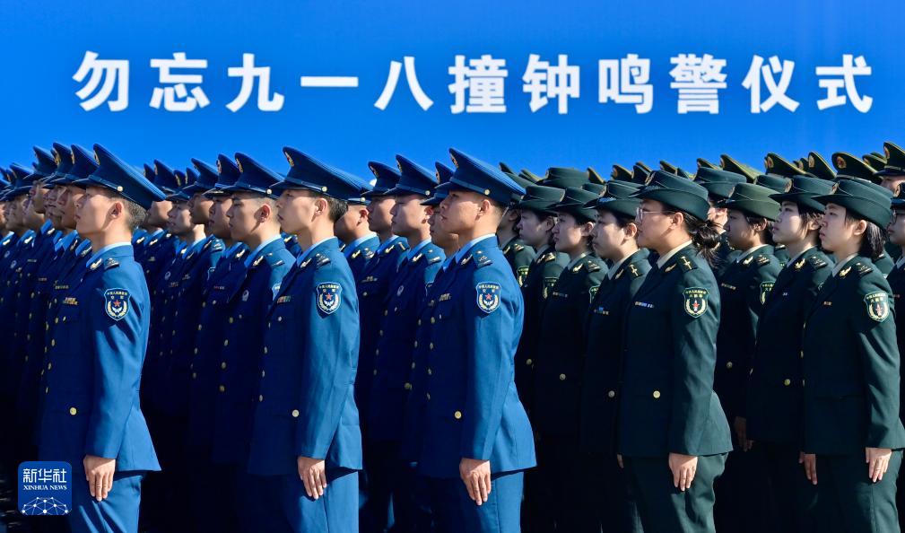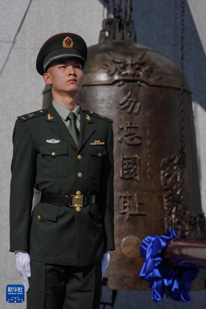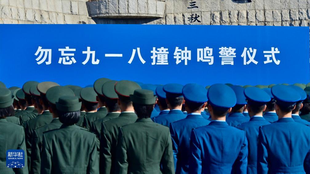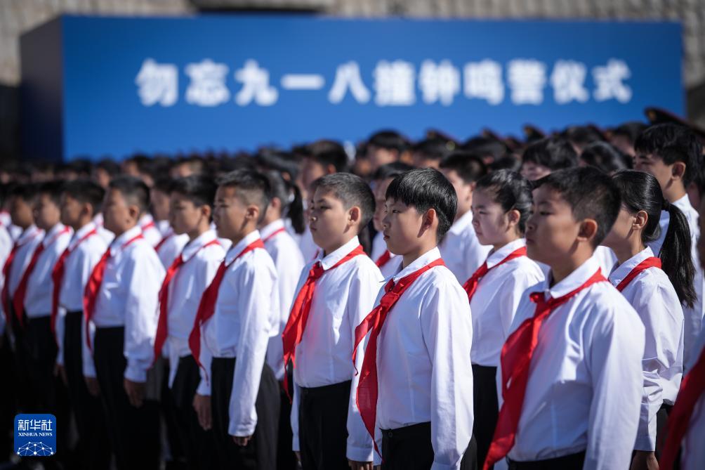 這是9月18日拍攝的“勿忘九一八”撞鐘鳴警儀式現(xiàn)場。