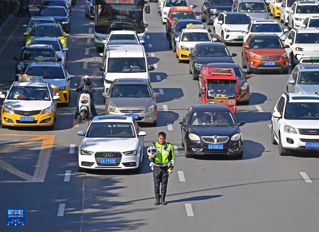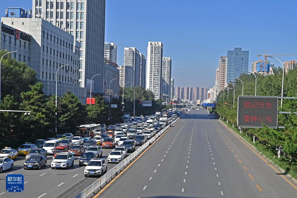 9月18日,車輛在沈陽崇山中路停車鳴笛。