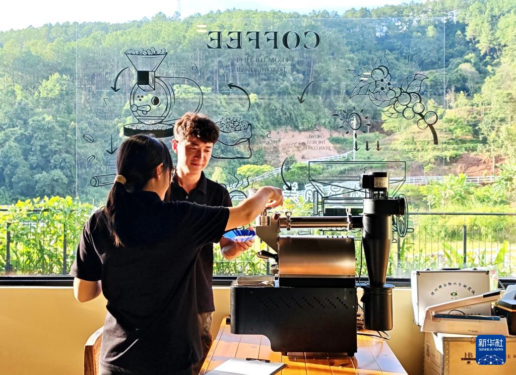 9月20日,游客在普洱市思茅區(qū)南屏鎮(zhèn)南島河村白沙坡小組的“美麗星村·有風(fēng)咖谷”品嘗咖啡。
