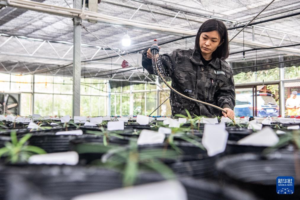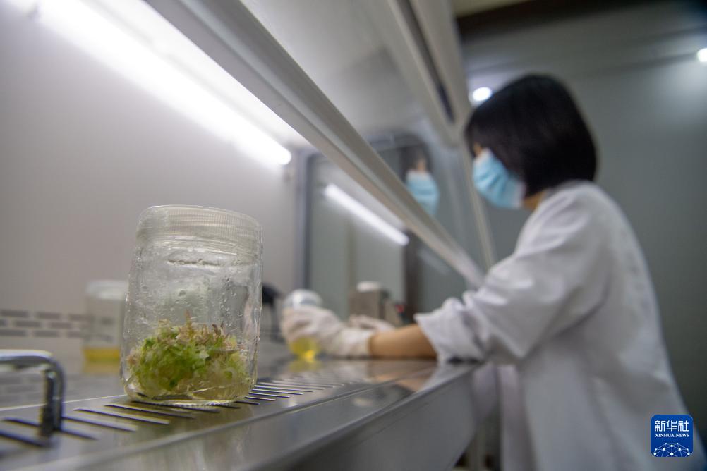 9月23日,在重慶金佛山國家級自然保護區(qū)管理事務(wù)中心,工作人員韋冠吾在實驗室進(jìn)行植物繁育實驗。