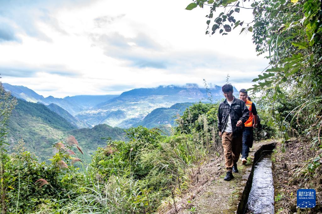 9月22日,管理中心工作人員通過懸崖上的水渠前往銀杉群落監(jiān)測樣地。