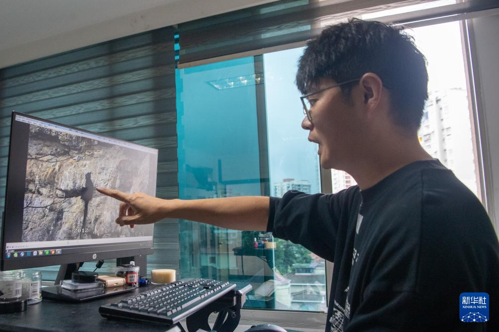 9月23日,在重慶金佛山國家級自然保護區(qū)管理事務(wù)中心,工作人員李新通過視頻分析黑葉猴生活習(xí)性。