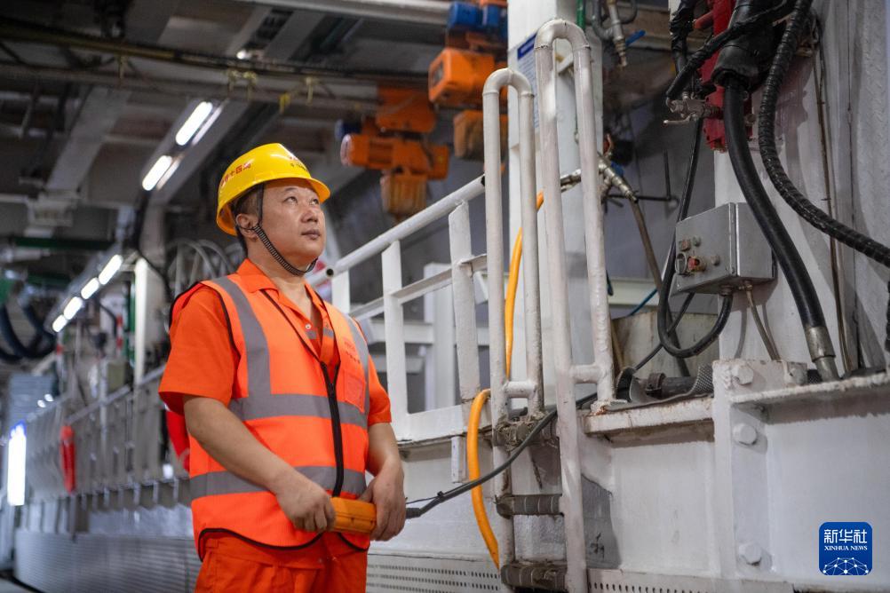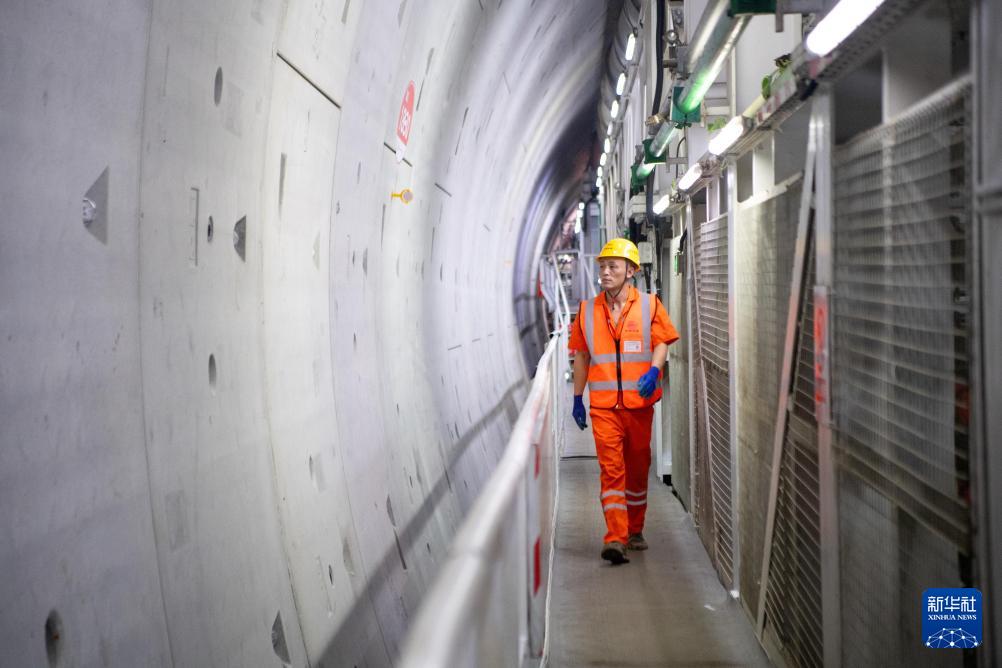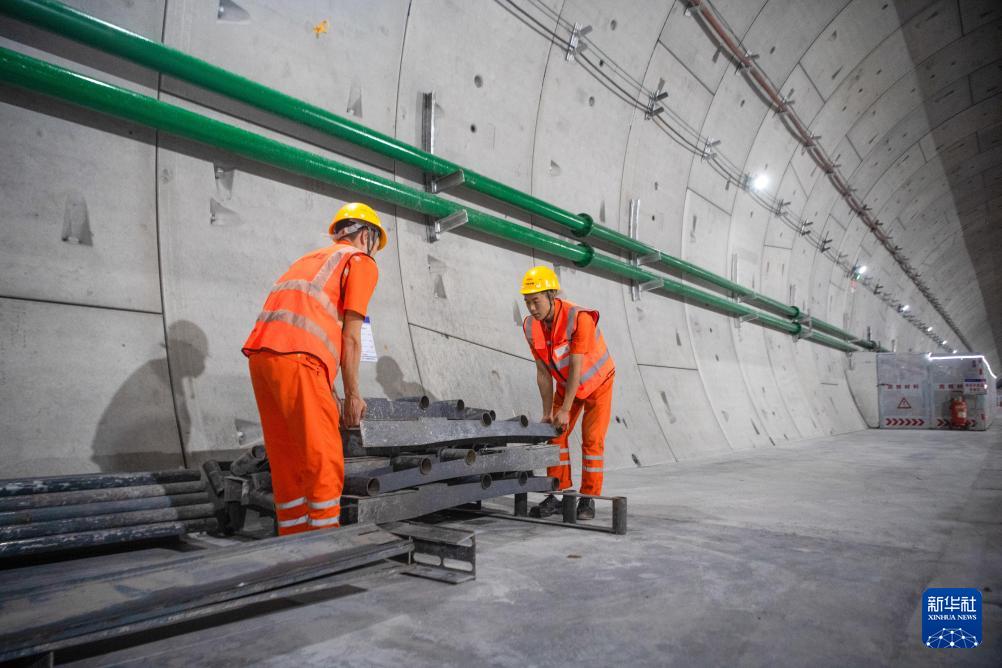 9月25日,工人在渝廈高鐵重慶菜園壩長江鐵路隧道建設(shè)現(xiàn)場施工作業(yè)。