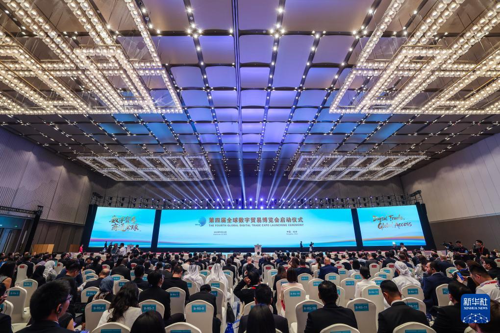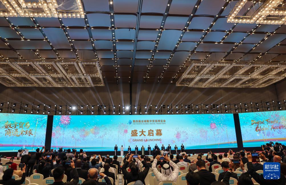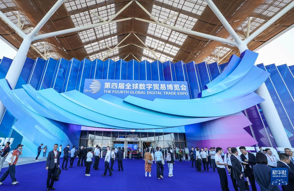 這是9月25日拍攝的第四屆全球數(shù)字貿(mào)易博覽會啟動儀式現(xiàn)場。