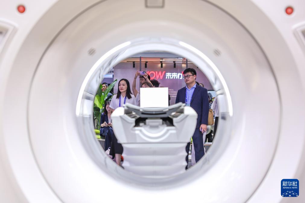 9月25日,觀眾在第四屆全球數(shù)字貿(mào)易博覽會數(shù)字醫(yī)療展區(qū)參觀智能醫(yī)療設(shè)備。