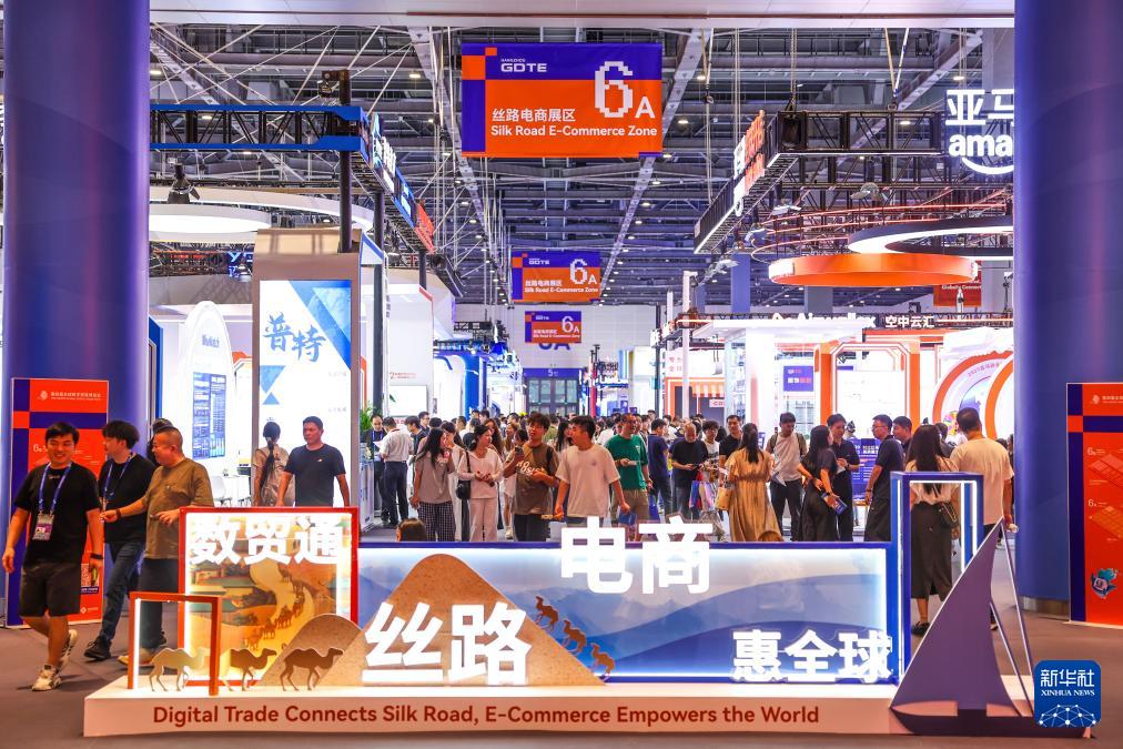 這是9月25日拍攝的第四屆全球數(shù)字貿(mào)易博覽會絲路電商展區(qū)一角。