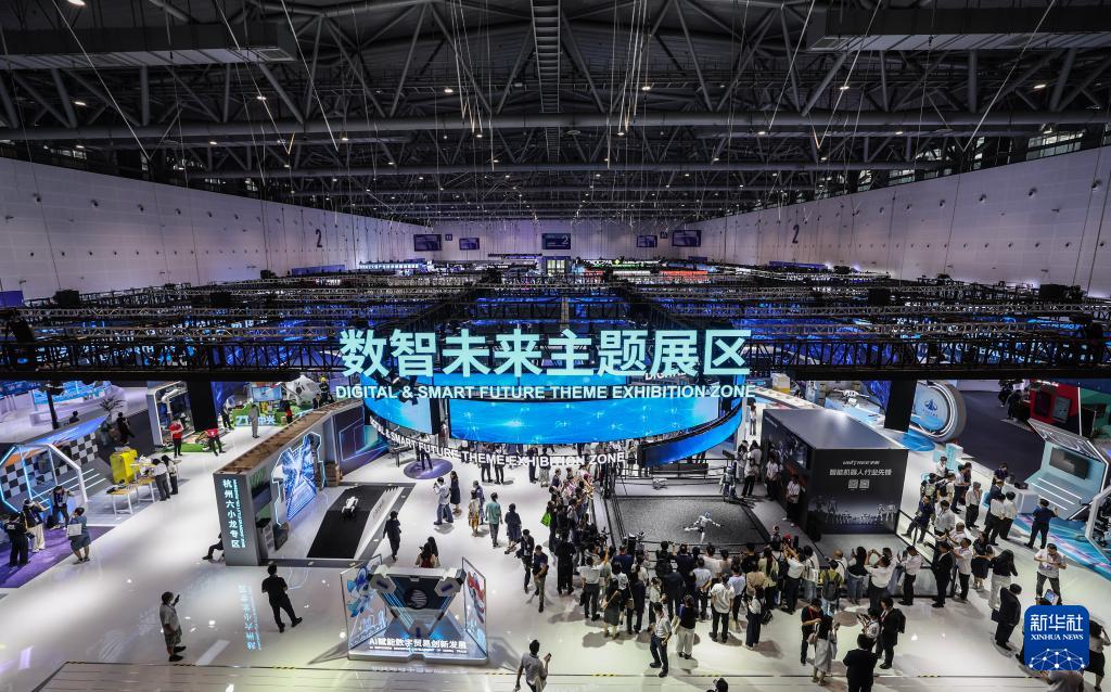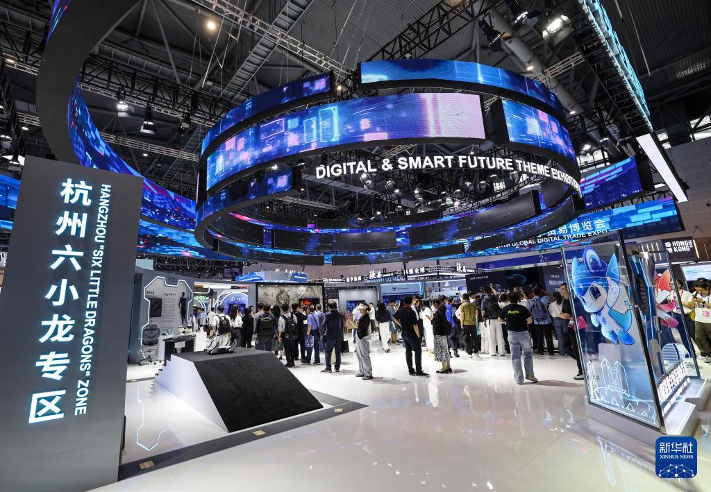 這是9月25日拍攝的第四屆全球數(shù)字貿(mào)易博覽會數(shù)智未來主題展區(qū)的杭州六小龍專區(qū)。