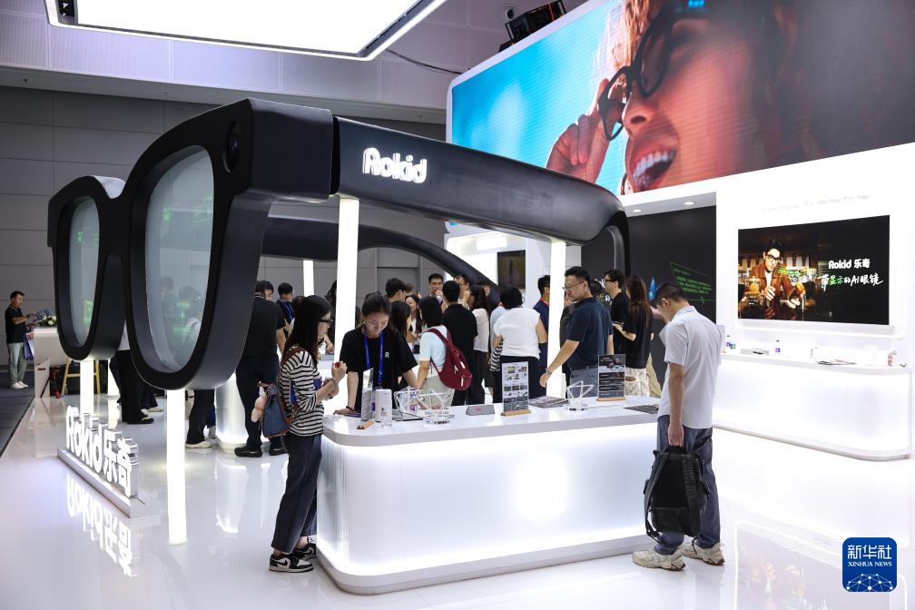 9月25日,觀眾在第四屆全球數(shù)字貿(mào)易博覽會人工智能展區(qū)參觀智能眼鏡設(shè)備。