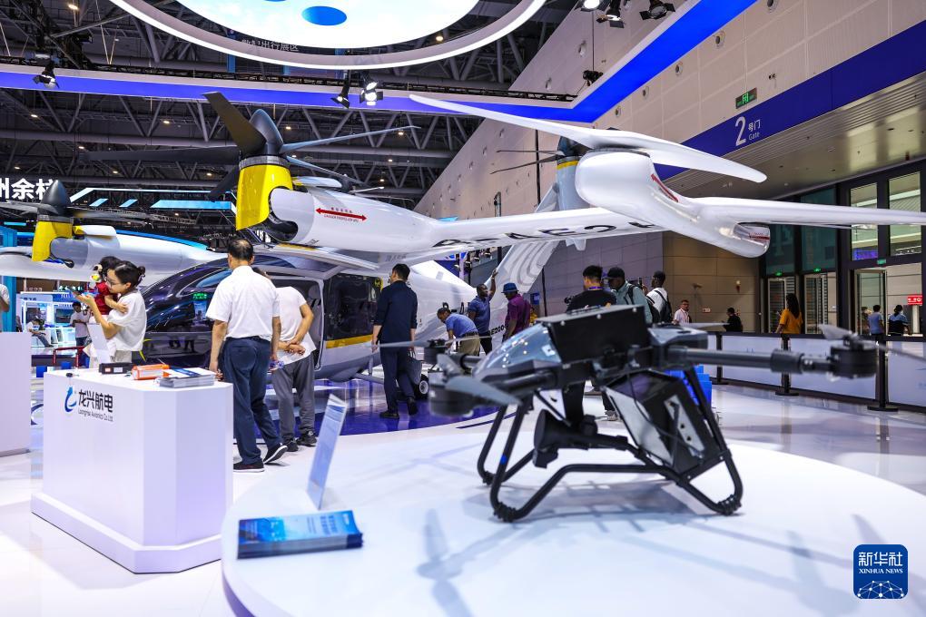 9月25日,觀眾在第四屆全球數(shù)字貿(mào)易博覽會數(shù)智出行展區(qū)參觀無人機(jī)。