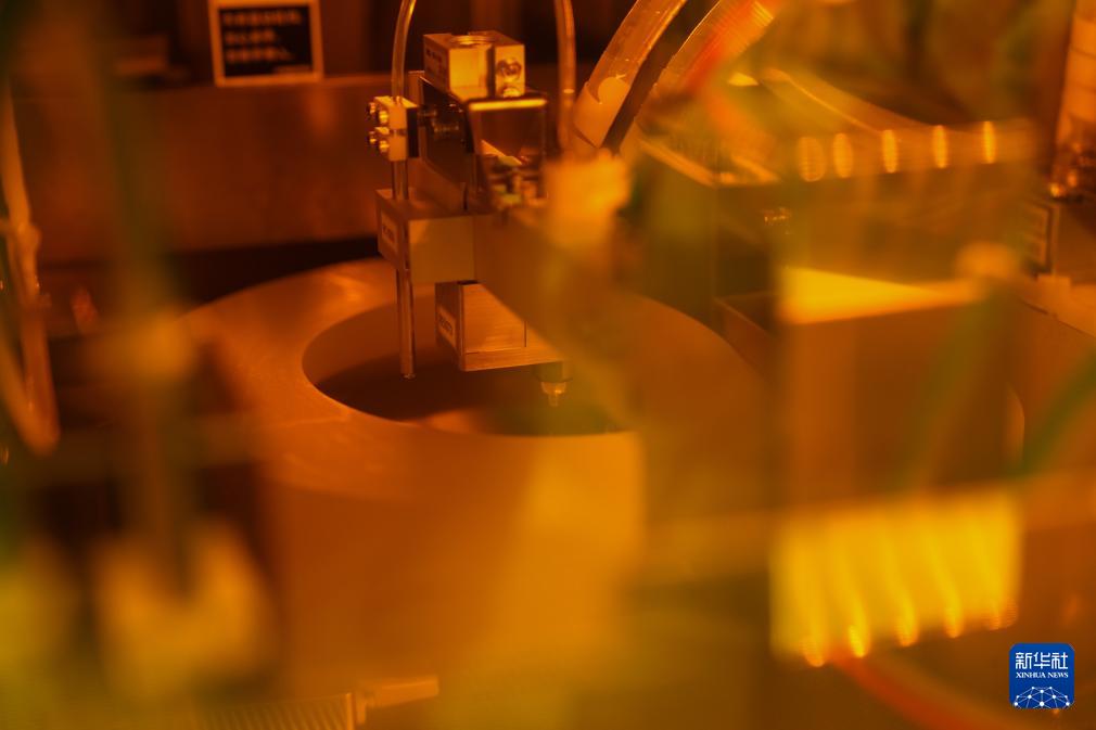 這是9月25日拍攝的上海交通大學(xué)無錫光子芯片研究院光子芯片中試線光刻間內(nèi)的涂膠作業(yè)。