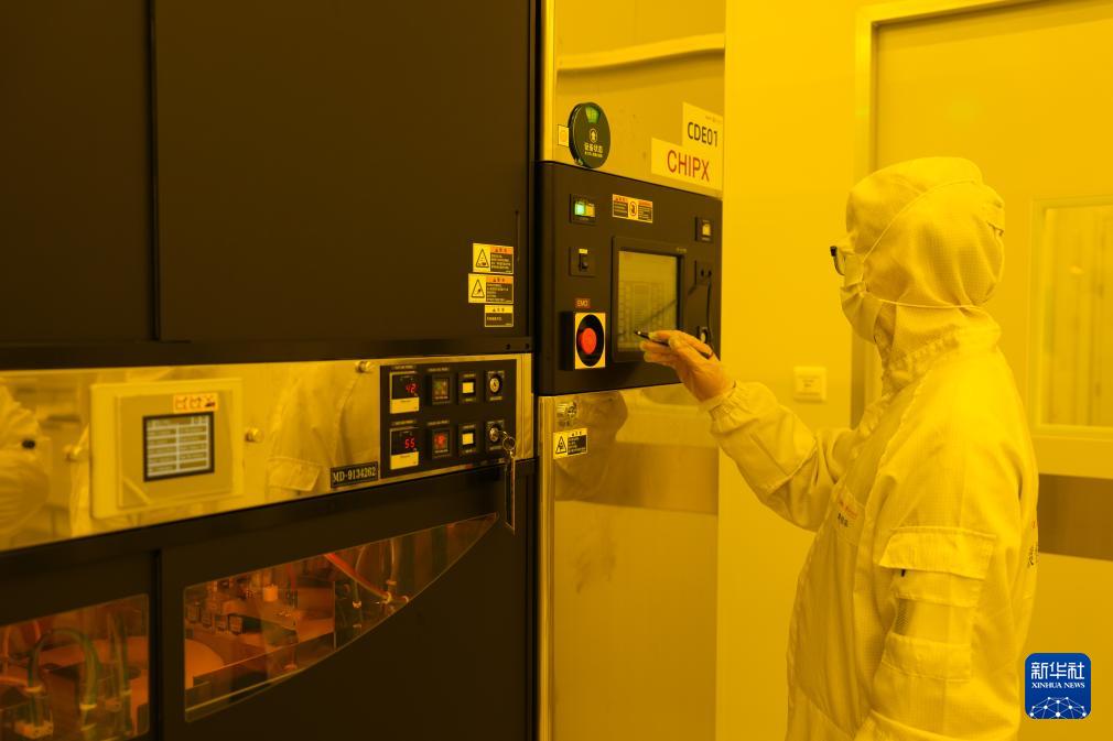 9月25日,工程師在上海交通大學(xué)無錫光子芯片研究院光子芯片中試線光刻間工作。