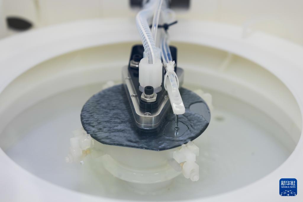 這是9月25日在上海交通大學(xué)無錫光子芯片研究院光子芯片中試線上拍攝的濕法工藝。