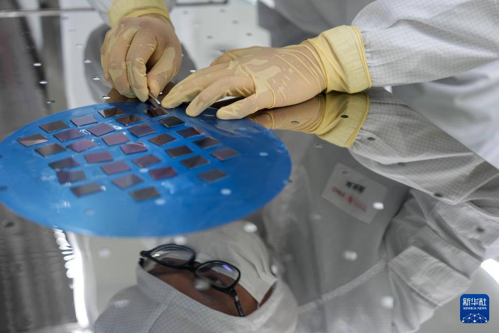 9月25日,工程師在上海交通大學(xué)無錫光子芯片研究院光子芯片中試線取片。