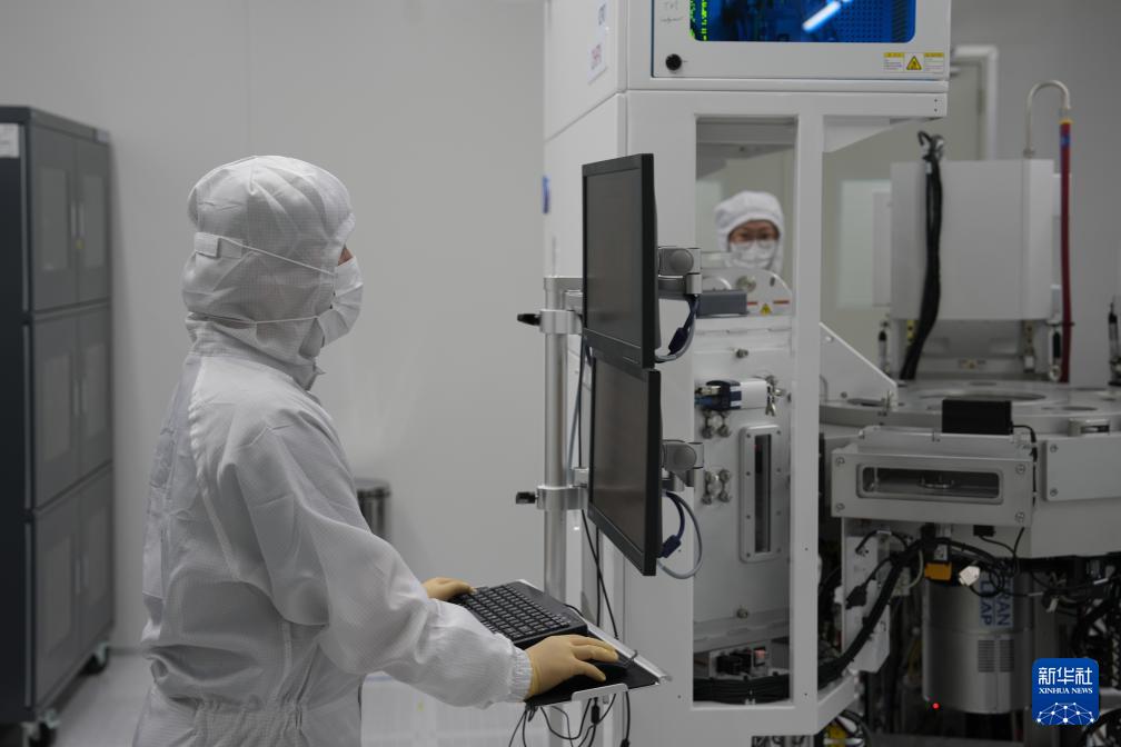 9月25日,工程師在上海交通大學(xué)無錫光子芯片研究院光子芯片中試線刻蝕間工作。