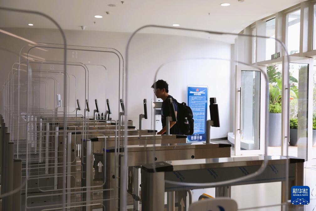 9月25日,一名學(xué)生走進(jìn)海南陵水黎安國(guó)際教育創(chuàng)新試驗(yàn)區(qū)的圖書館。該館門禁采用無感借閱系統(tǒng),可通過人臉識(shí)別關(guān)聯(lián)學(xué)生名下借閱的書目情況。