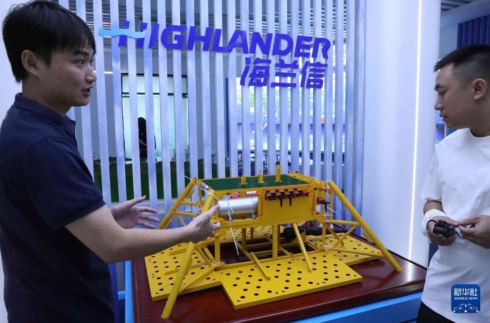 9月25日,參觀者近距離觀看海南海底數(shù)據(jù)中心的海底數(shù)據(jù)艙微縮實(shí)景模型。