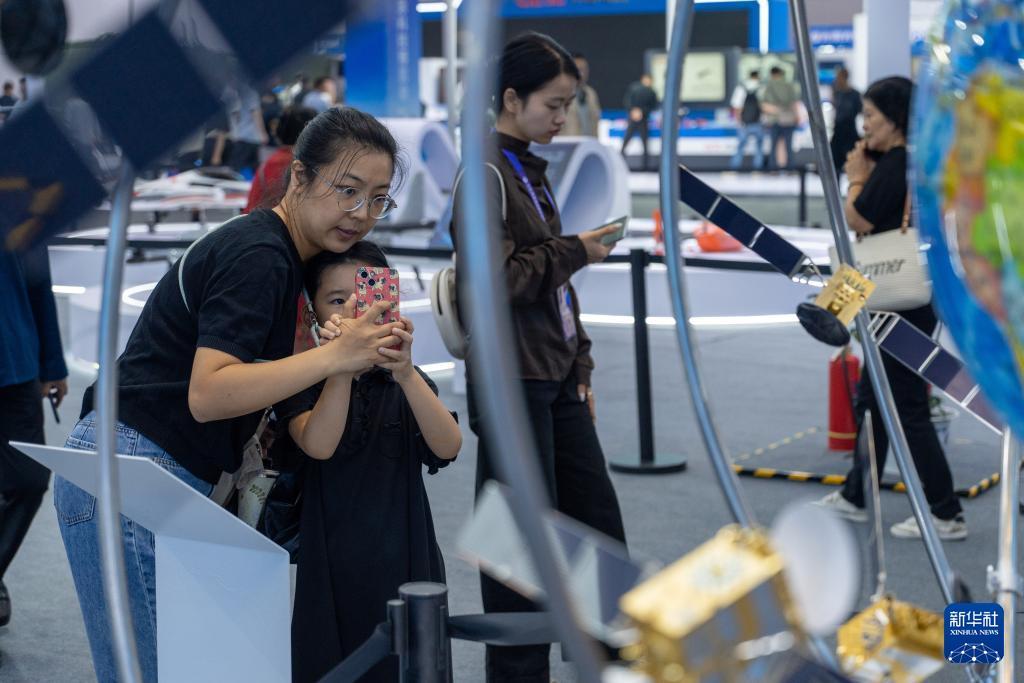 9月27日,在第十三屆中國(綿陽)科博會上,小觀眾在拍攝北斗衛(wèi)星導航系統(tǒng)模型。