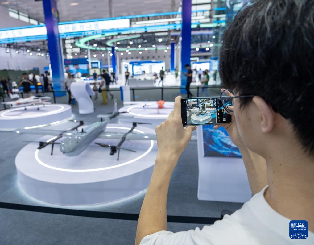 9月27日,在第十三屆中國(綿陽)科博會上,觀眾拍攝測繪無人機。