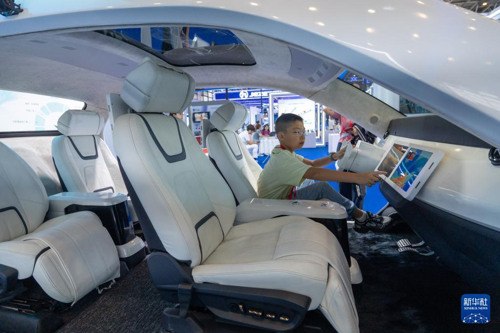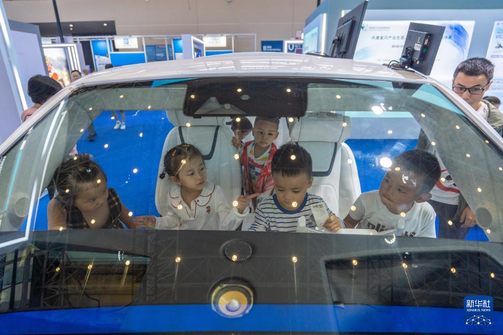 9月27日,在第十三屆中國(綿陽)科博會上,小觀眾在參觀未來概念汽車內部。