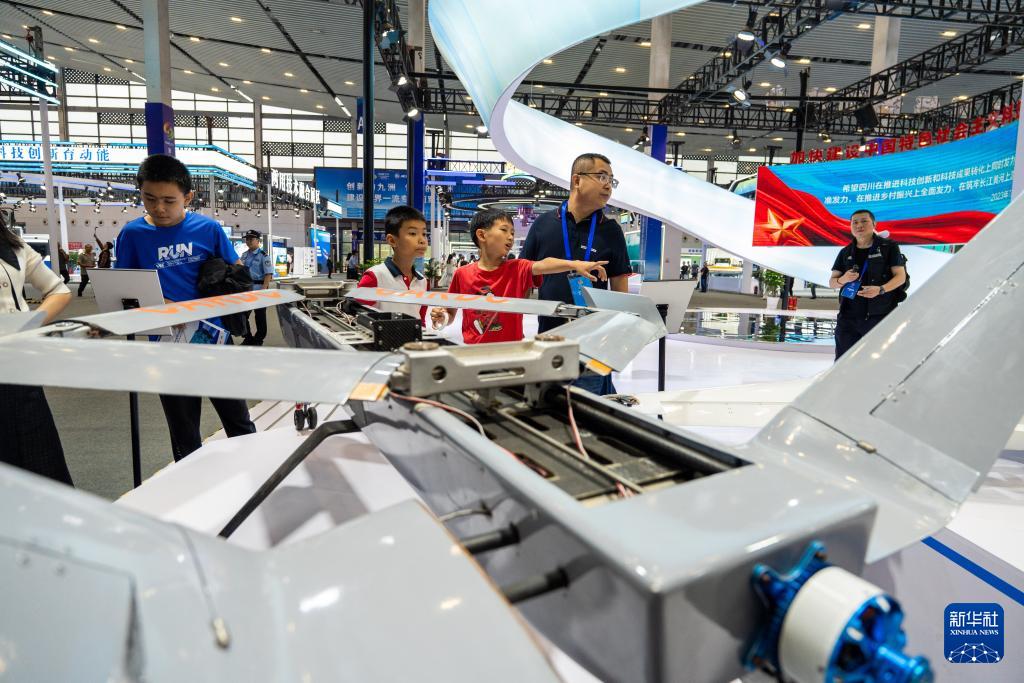 9月27日,在第十三屆中國(綿陽)科博會上,觀眾在近距離了解無人機內部結構。