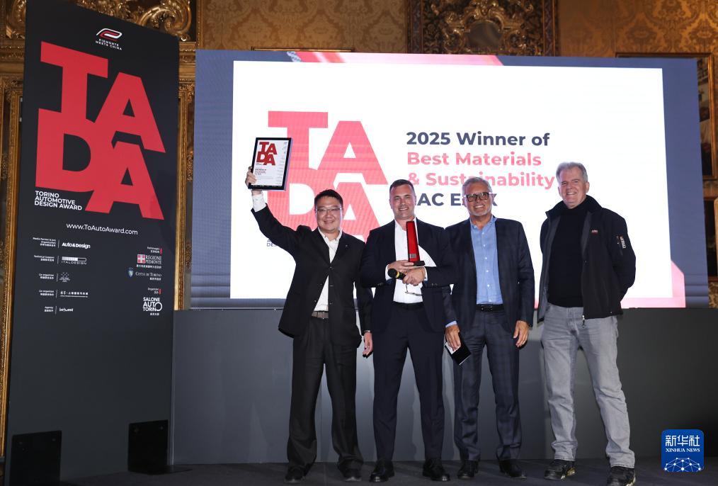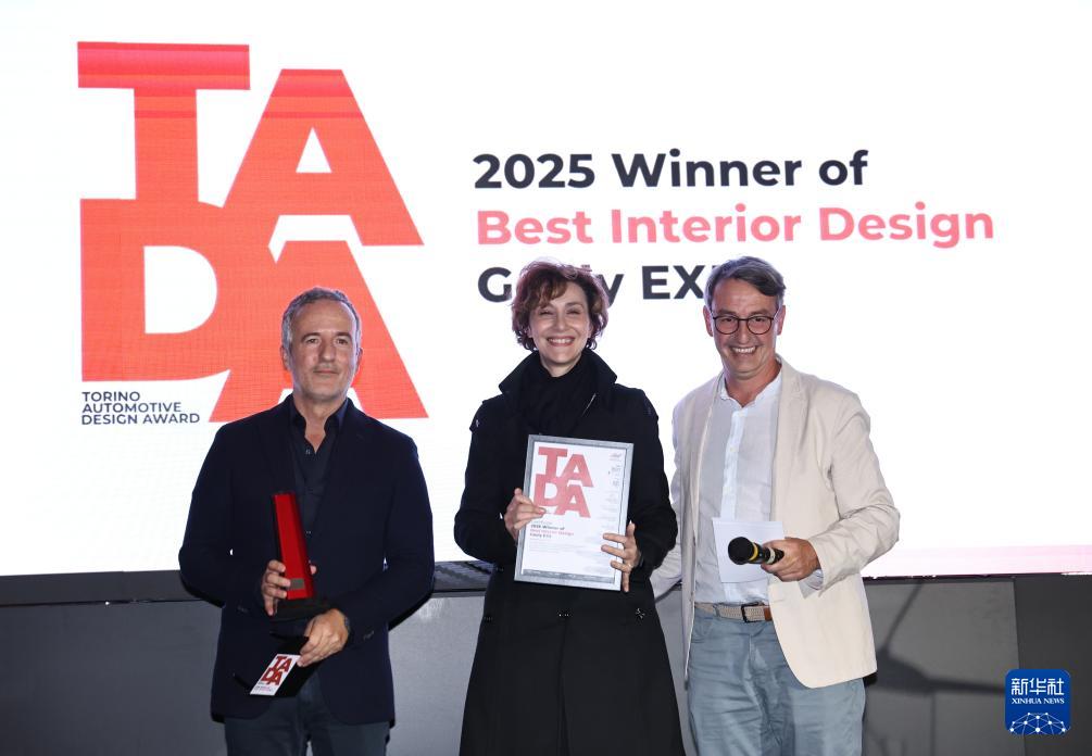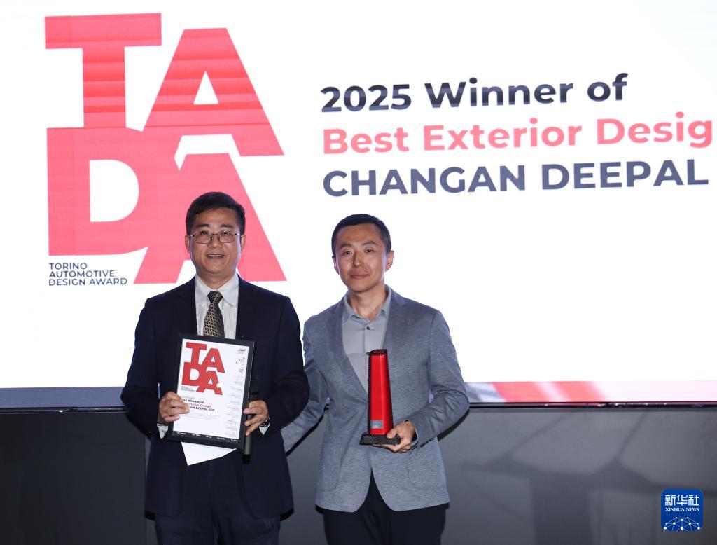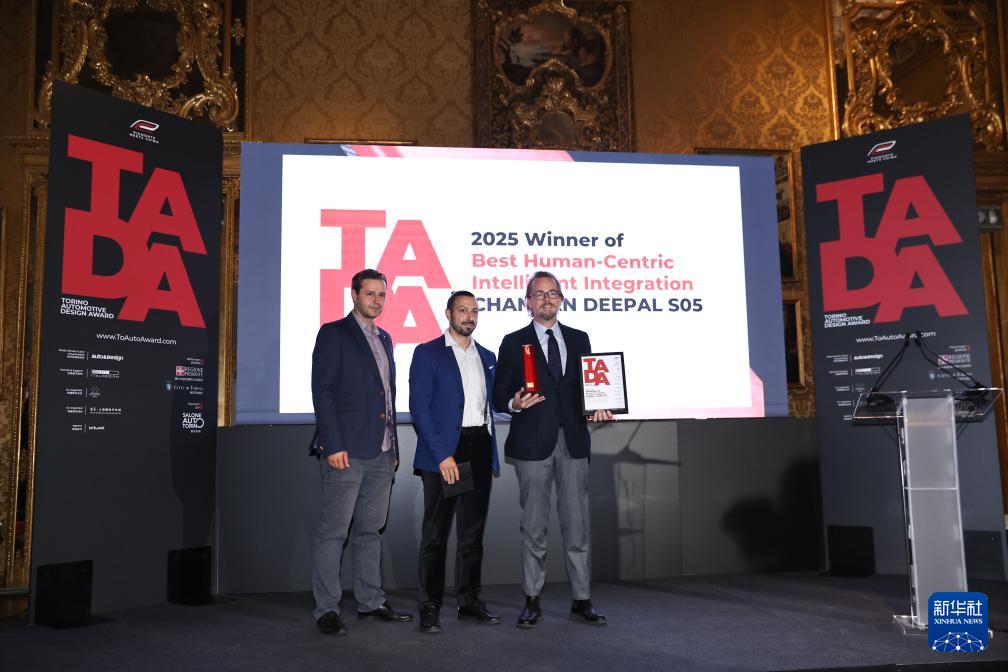 9月26日,在意大利都靈,榮獲“都靈汽車設(shè)計(jì)獎(jiǎng)”最佳外觀設(shè)計(jì)獎(jiǎng)的長(zhǎng)安“深藍(lán)S07”代表領(lǐng)獎(jiǎng)。