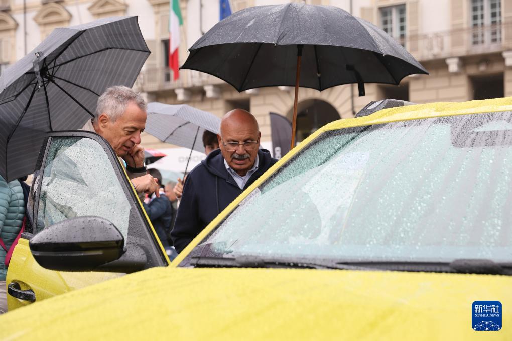 9月26日,在意大利都靈,人們?cè)?025年都靈車展上參觀一款展出的菲亞特汽車。