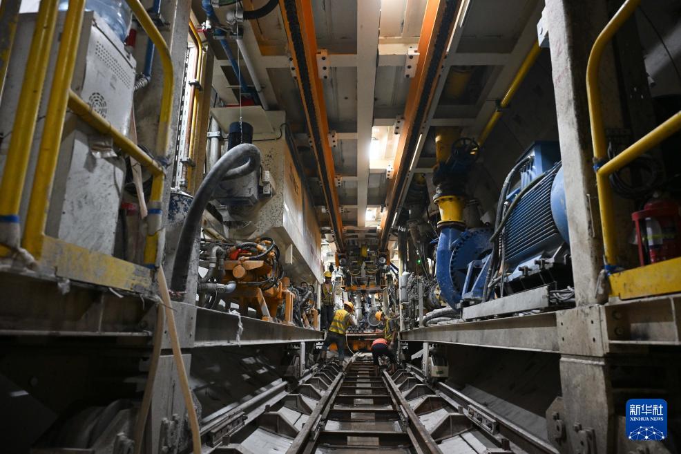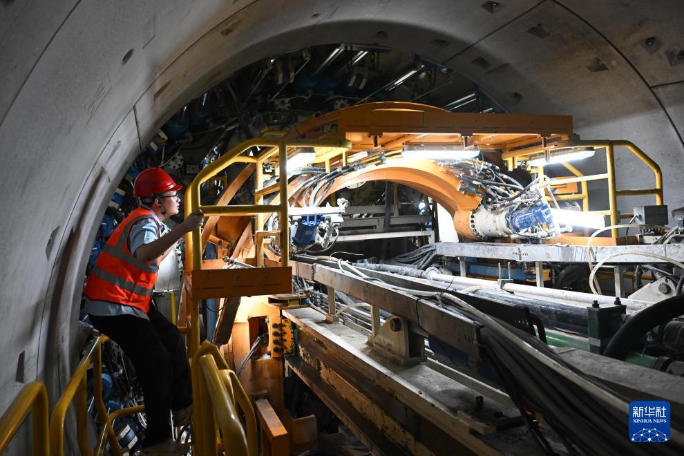 9月28日,在廣東廉江的環(huán)北部灣廣東水資源配置工程盾構(gòu)隧洞內(nèi),中鐵十二局工人在查看設(shè)備。