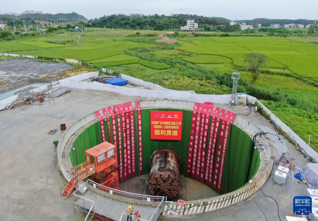 9月28日在廣東廉江的施工現(xiàn)場(chǎng)拍攝的“粵海環(huán)北8號(hào)”盾構(gòu)機(jī)順利貫通環(huán)北部灣廣東水資源配置工程首個(gè)盾構(gòu)區(qū)間(無(wú)人機(jī)照片)。