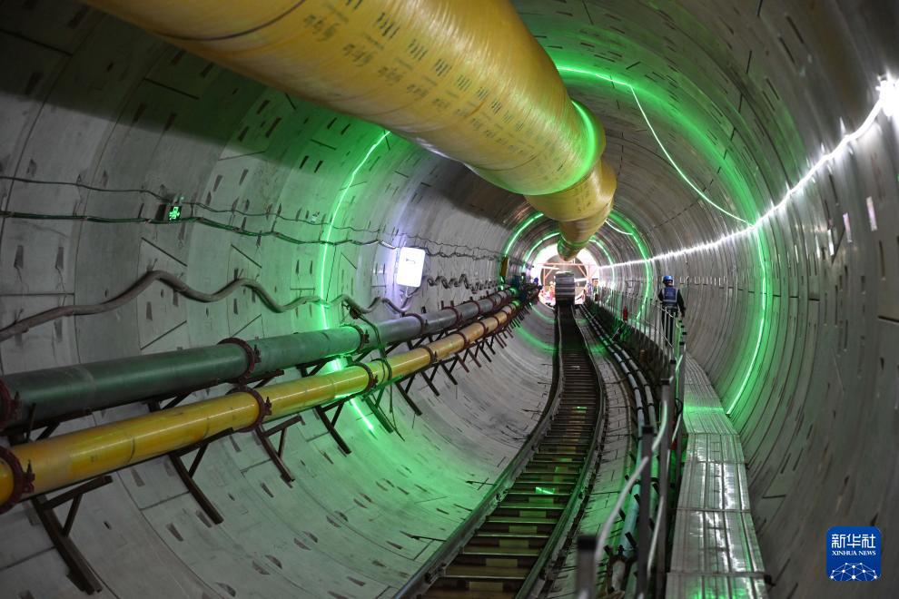 9月28日,在廣東廉江的環(huán)北部灣廣東水資源配置工程盾構(gòu)隧洞內(nèi),中鐵十二局工人在巡視。