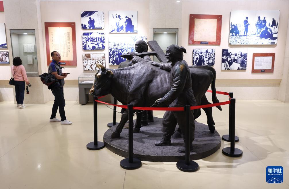 10月8日,游客在河北省平山縣西柏坡紀(jì)念館參觀。