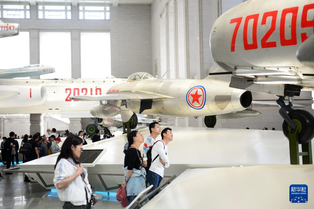 10月7日,人們?cè)谖挥诒本┑闹袊?guó)人民革命軍事博物館參觀游覽。