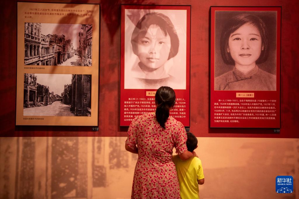 10月2日,家長(zhǎng)帶著孩子在海南省瓊海市紅色娘子軍紀(jì)念園參觀。
