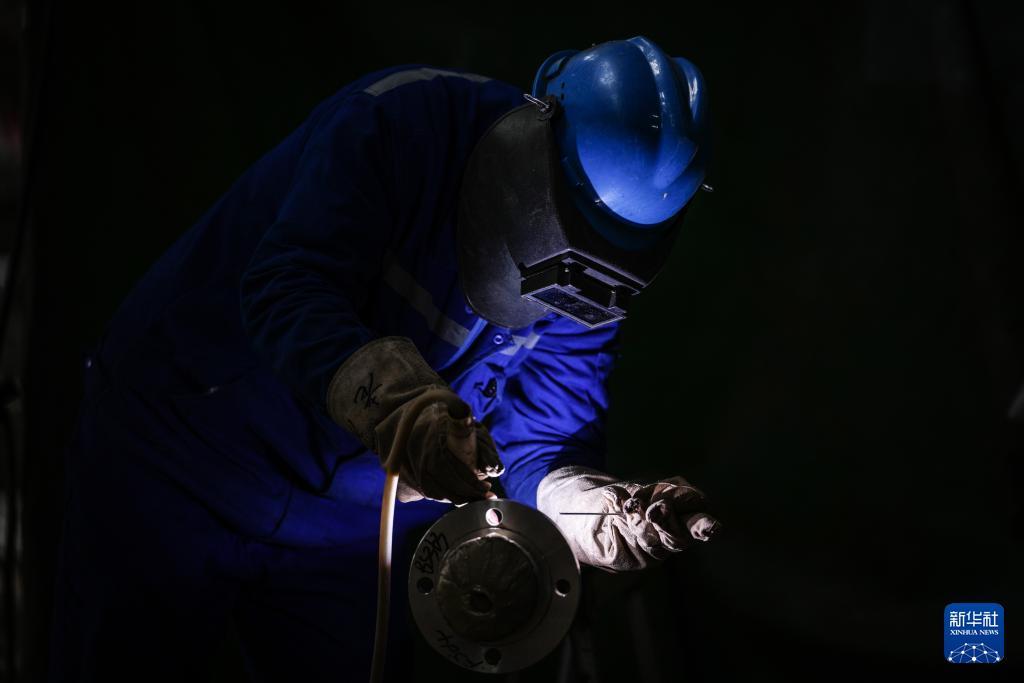 10月10日,工作人員在華錦阿美精細(xì)化工及原料工程項(xiàng)目現(xiàn)場施工。