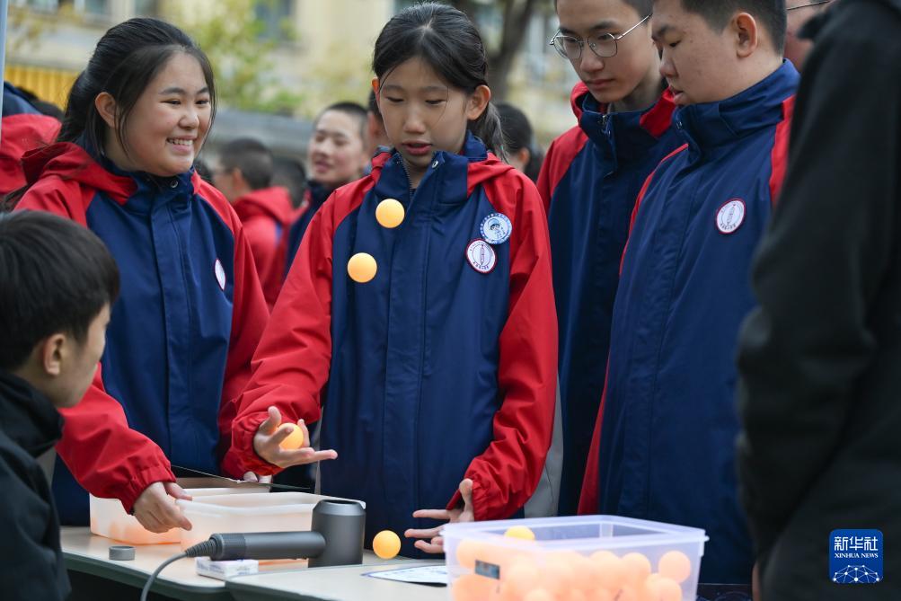 10月14日,新疆生產(chǎn)建設兵團第一中學學生在科技節(jié)上體驗科學實驗。