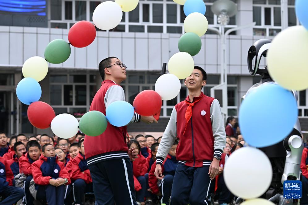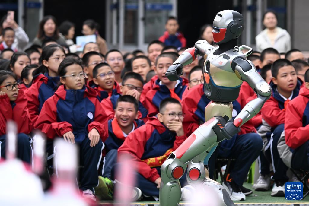 10月13日,新疆生產(chǎn)建設兵團第一中學學生在科技節(jié)開幕式上觀看智能機器人跳舞。